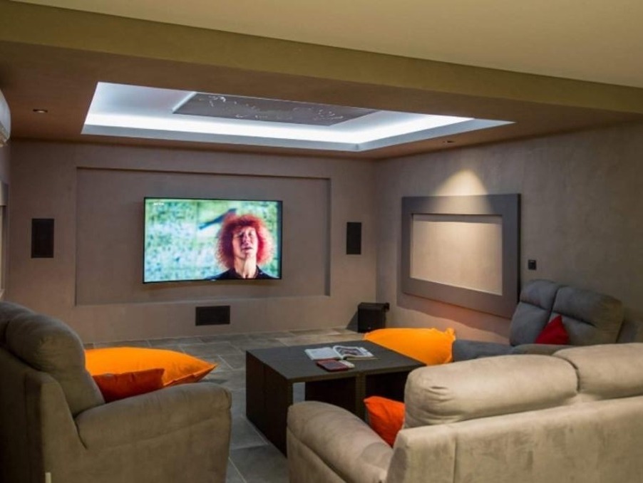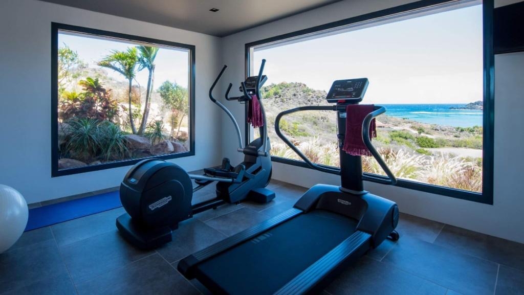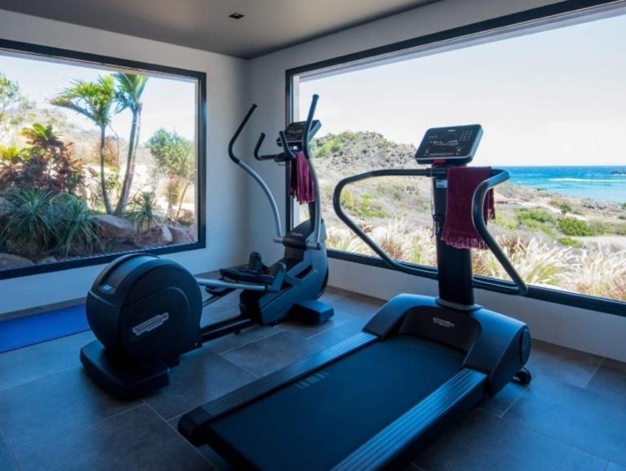 Au niveau inférieur, vous trouverez une salle de cinéma, une salle de fitness totalement équipée ainsi qu'une salle de bain.